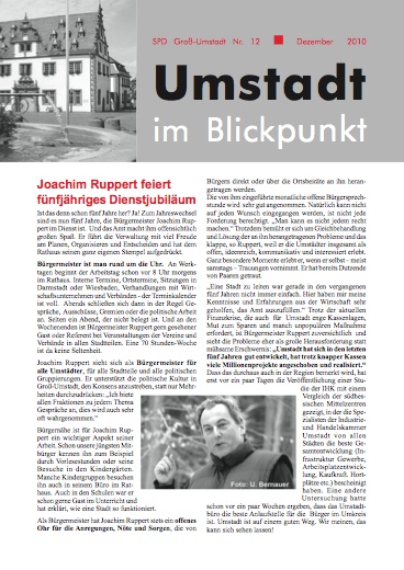 Pünktlich zum Jahreswechsel ist die mittlerweise 12. Ausgabe von Umstadt im Blickpunkt erschienen. Themen sind unter anderem das fünfte Dienstjubiläum unseres Bürgermeisters Joachim Ruppert, die Listen der SPD für die Ortsbeiräte zur Kommunalwahl sowie die Verschwisterung mit Dicomano. Zum Download geht es hier...